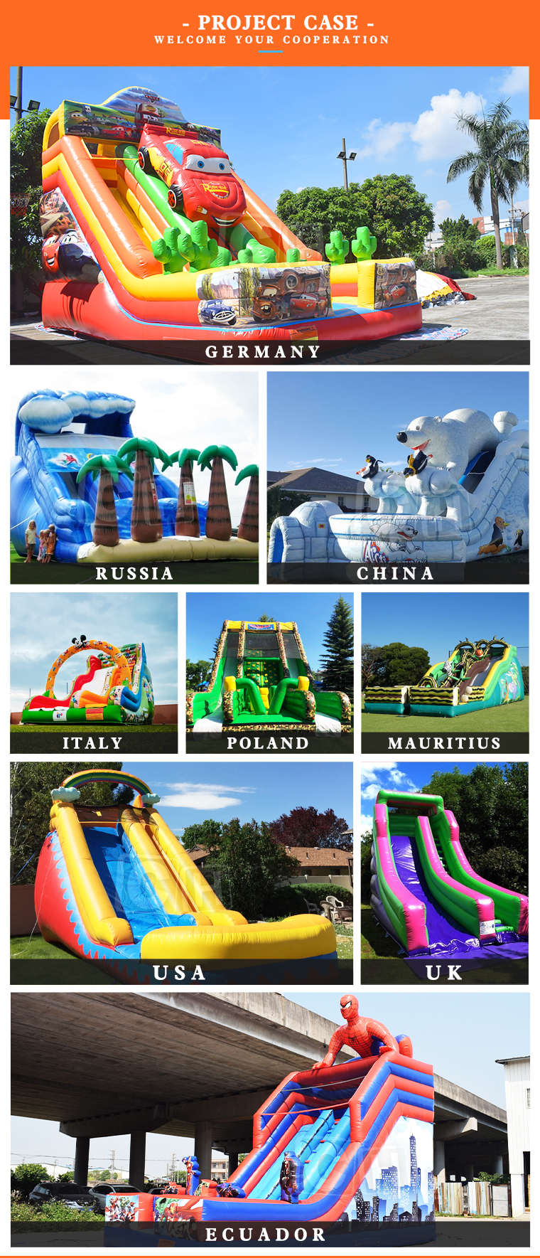 Our 3D designers will design products according to your requirements. Customer service will follow up the project throughout the whole process, and change your design or solve problems in a timely manner. CH Inflation Company cooperates with experienced transportation agencies to ensure that the products arrive at the destination intact. In addition, we also provide installation videos to help you install easily.